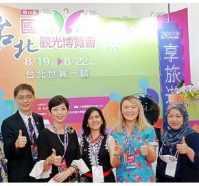 日期 : 2nd Nov 2022 地點 : 竹北體育館 2022新竹國際旅遊展於9月2日在新竹竹北體育館隆重登埸。 (後排左3)馬來西亞觀光局台北辦事處 娜伊...
