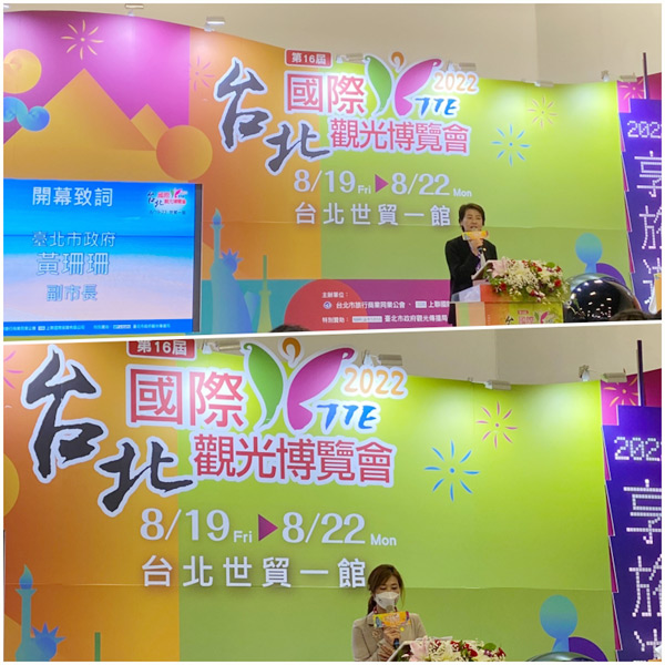 (上圖)台北市副市長黃珊珊致詞及(下圖)台北市旅行商業同業公會理事長駱炫宏致詞