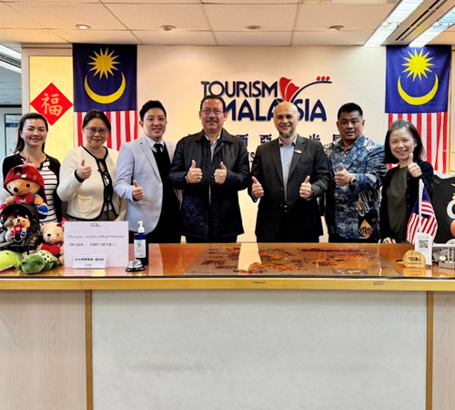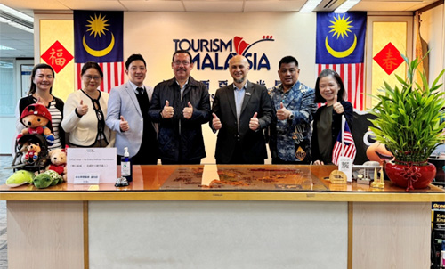 (右起2) 根多多國際集團 張華盛全球總經理、馬來西亞觀光局台北辦事處 哈翡之處長、 根多多國際集團 艾芝藍主席、陳則辰 台灣區業務副總及劉妍延總裁特助合影